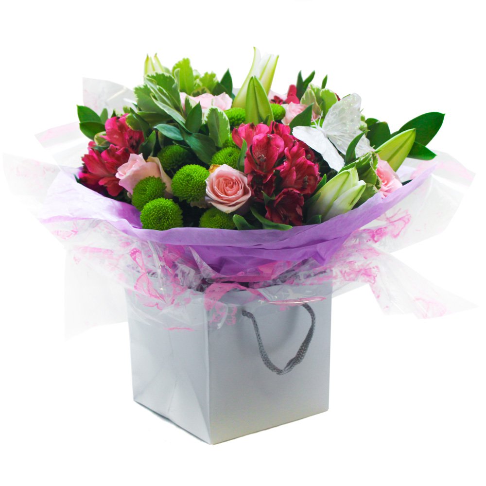 Colours and selection includes lilacs, pinks and greens. The florist will choose the loveliest flowers of the day. Beautifully gift wrapped to make this extra special.